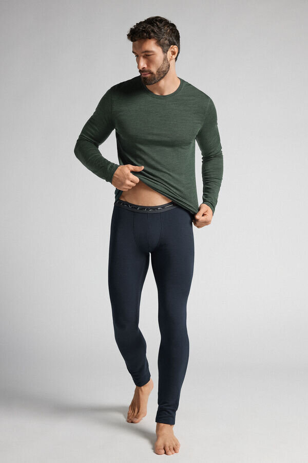 miesten leggingsit modaalikasmirisekoitteesta, lahkeensuissa resorit ja näkyvä vyötärönauha. ihanteelliset urheiluun. malli on 185 cm pitkä ja käyttää kokoa l. myynnissä Intimissimi man -myymälöissä.