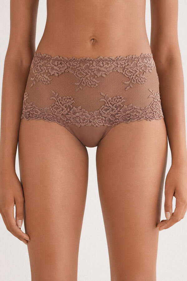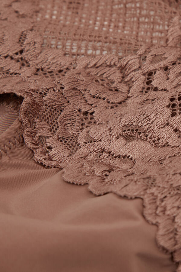 korkeavyötäröiset hipster-bikinit, jotka on valmistettu pitsirypistyksestä ja pehmeästä mikrokuidusta alaosasta. valitun värin mukaan pitsi voi olla kontrastivärinen tai sävy sävyyn. korkeat sivut. sisäosa 100 % puuvillaa.