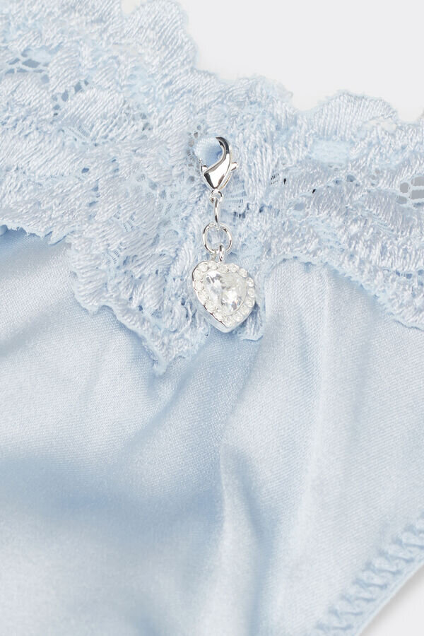 1980-luvun tyylinen Brazilian malli, valmistettu kevyestä, joustavasta pehmeästä silkkisatiinista, jossa on kukka-kirjailtu pitsi vyötärönauhassa.