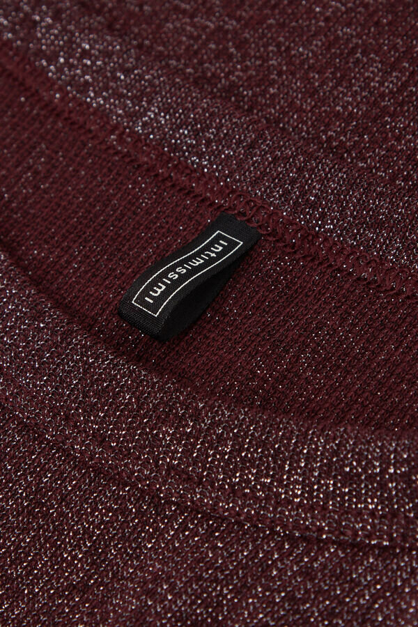 neulottu puuvillalamé-toppi, jossa on pyöreä kaulus.