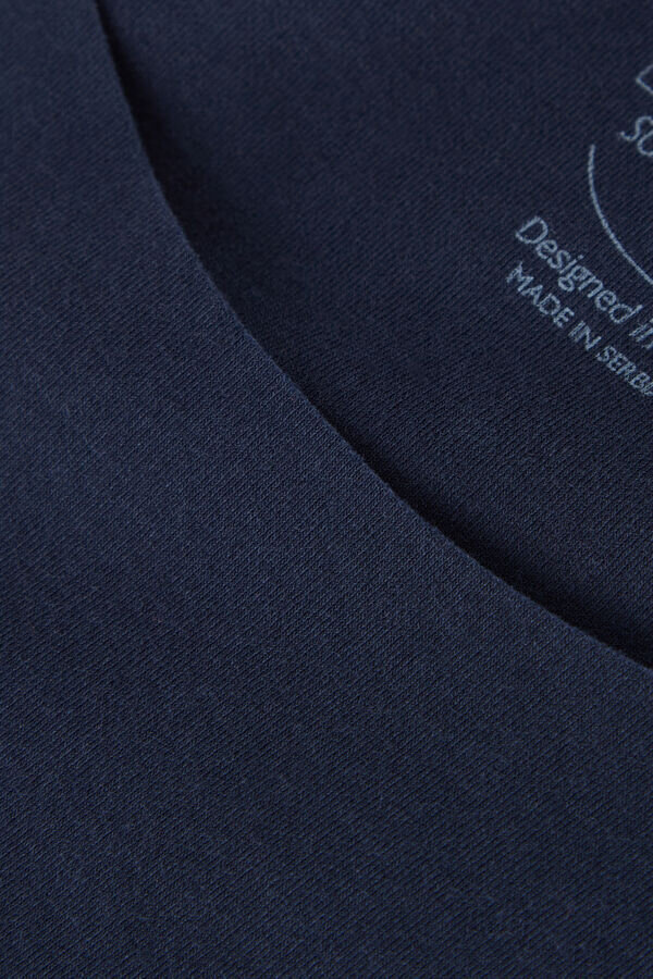 toppi raakareunaisesta joustavasta puuvillasta, pyöreä kaulus. malli on 179 cm pitkä ja hänellä on yllään koko S.
