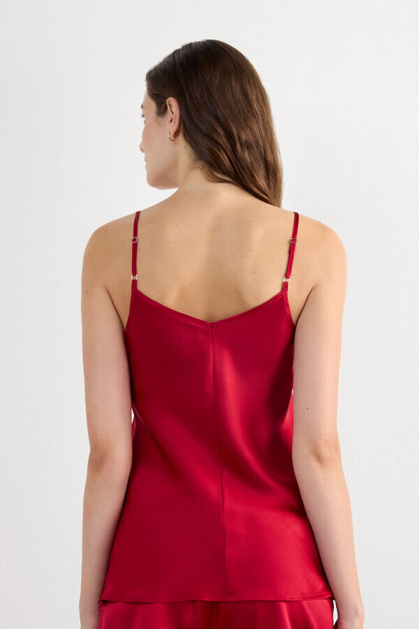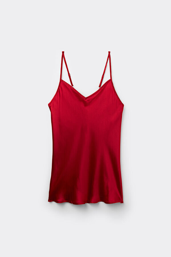 silkkisatiininen toppi, jossa on V-aukko edessä ja takana. säädettävät ohuet olkaimet.