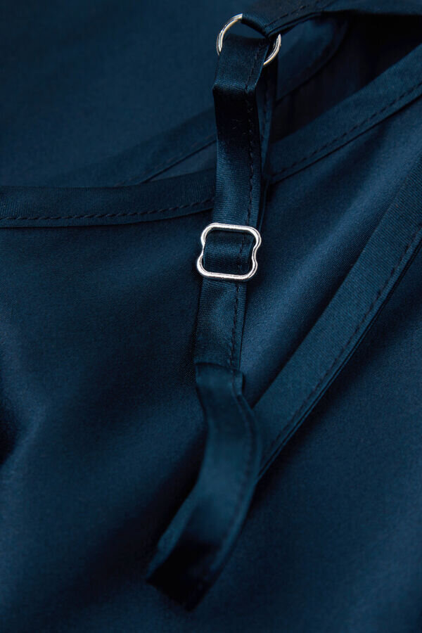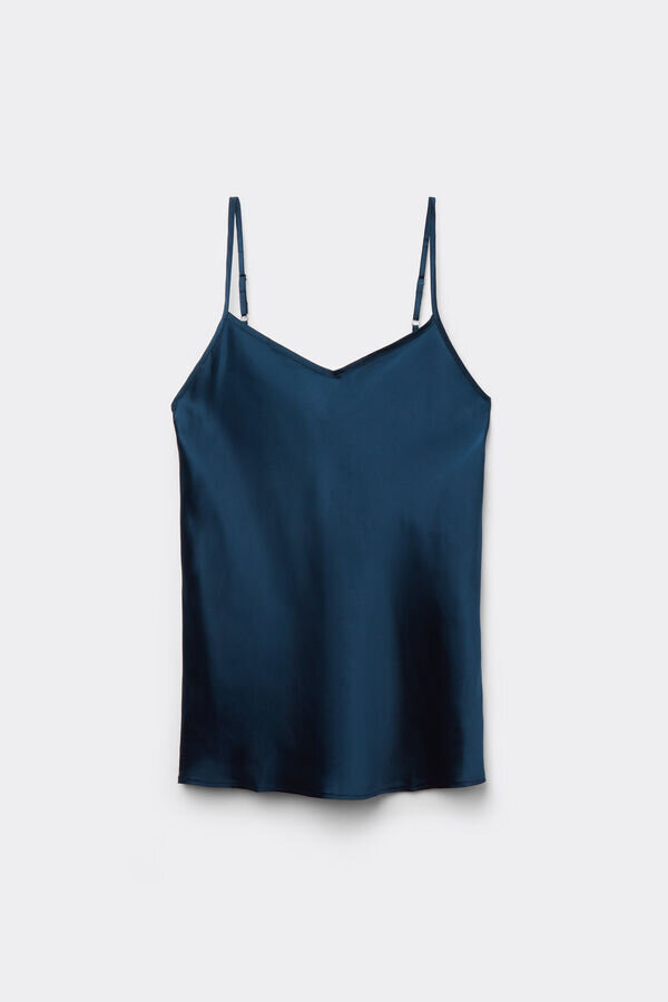 silkkisatiininen toppi, jossa on V-kaula-aukko edessä ja takana. säädettävät ohuet olkaimet.