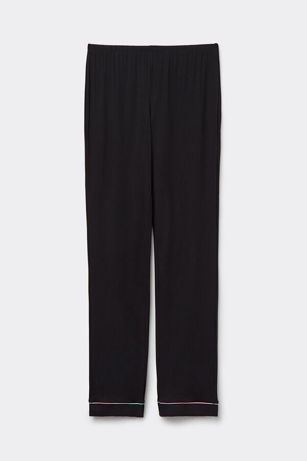 pitkät mikromodaalihousut. kontrastiset satiinikoristeet.
