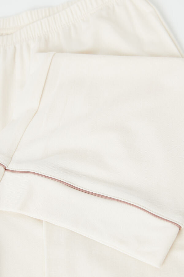 pitkät mikromodaalihousut. kontrastiset satiinireunukset.
