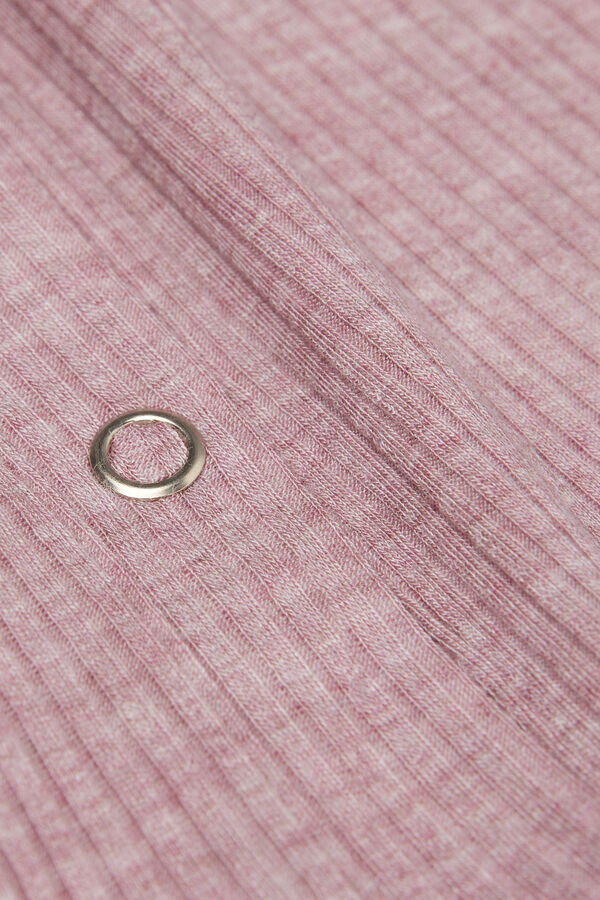 Pusero pehmeää ribbineulosta, edessä automaattinen napitus. Sopii erinomaisesti myös napittamattomana tankkitopin tai camisolen päälle.