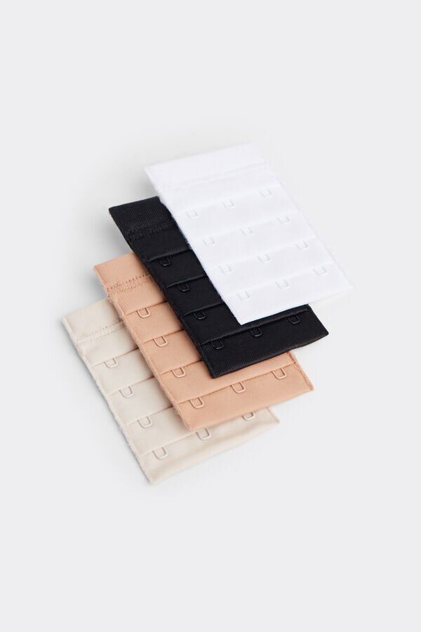 suuret säätökoukut, joiden avulla voit pidentää rintaliivin alareunaa vastaamaan niiden tarpeita, joilla on suurempi rintakehä suhteessa rintojen kokoon. pakkauksessa on neljä kappaletta, joissa on kolme koukkua neljässä värissä: valkoinen, musta, pehmeä beige, silkkinen vaaleanpunainen. tuote saatavana yhdessä koossa.