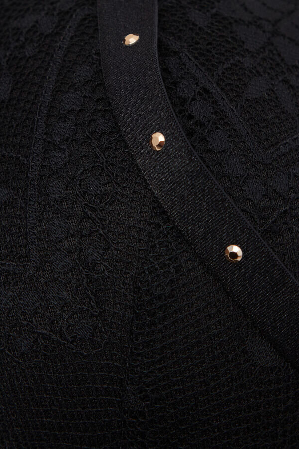 Sofia-balconette-rintaliivit pehmeästä joustavasta pitsistä, jossa on geometrinen kuvio yhdistettynä eleganttiin pisteelliseen tylliin. Erittäin sensuelli joustava kuvio dekolteessa on entistäkin kiehtovampi olkaimien kultaisten nastojen ansiosta. Pieni rusetti keskellä rintakuvaa kultaisella reunuksella. Rintaliivi muotoutuu luonnollisesti ja on erittäin mukava, joten se sopii erinomaisesti käytettäväksi kaula-aukon alla tai läpikuultavan topin alla.