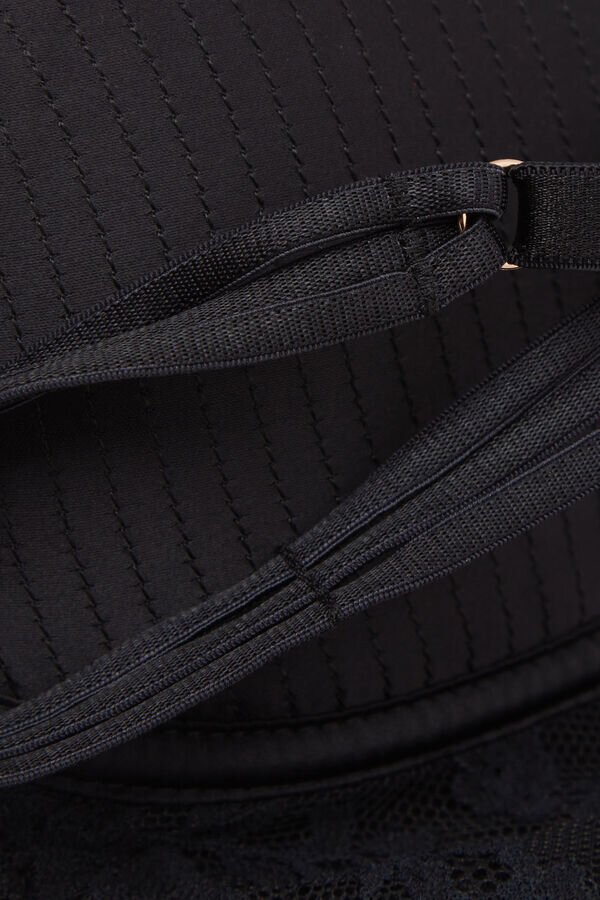 ilenia balconette-rintaliivit, joissa on ommellut satiinikupit ja kukka-pitsi alareunassa, luovat naisellisen tyylin retrohenkisellä vivahteella. aistilliset olkahihnat, joissa on kolme hihnaa, ja syvä kaula-aukko korostavat ja korostavat rintaa ja dekolteeta.