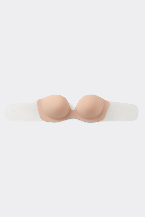 olkaimeton, saumaton mikrokuituinen push-up-rintaliivi, jossa on porrastettu pehmuste. kaarituet ovat näkymättömät ja integroitu kupit. kupit ja läpinäkyvät sivunauhat on päällystetty hypoallergeenisella, tarttuvalla geelillä, joka tarjoaa erinomaisen tuen ja pitää rintaliivin tukevasti paikoillaan. ihanteellinen käytettäväksi erityisesti syvään uurrettujen selkäosien kanssa.
