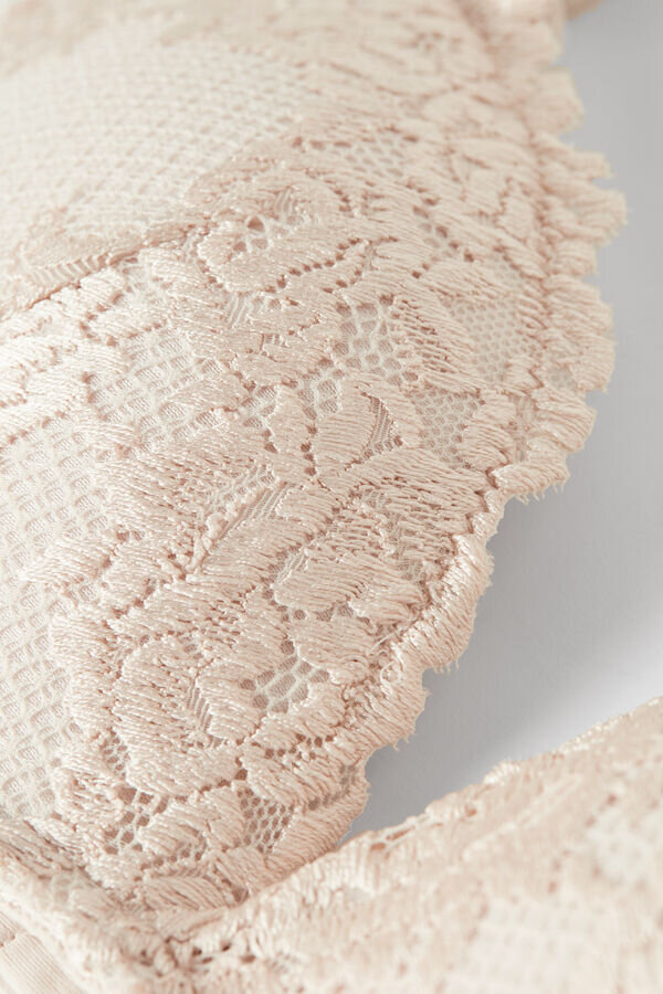 langaton gioia super push-up-rintaliivi, jossa on paksusti topatut, muotoillut kupit. se on valmistettu hienostuneesta ja tyylikkäästä joustavasta pitsistä, jossa on joko sävy sävyyn tai kontrastivärinen kukkakirjonta, mallista riippuen. Pitsillä viimeistellyt olkaimet ovat säädettävät takana. Ihanteellinen malli, joka luo kaksi kokoa suuremman vaikutelman ja henkeäsalpaavan dekolteen.